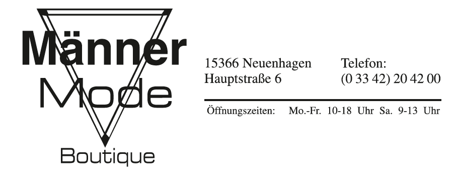 Männer Mode Boutique - Inh. B. Schroll - Hauptstr. 6 - 15366 Neuenhagen b. Berlin - ID-Nr.: DE 139138105
